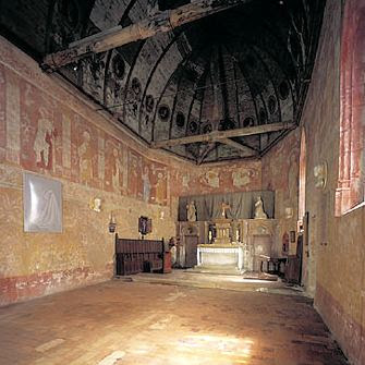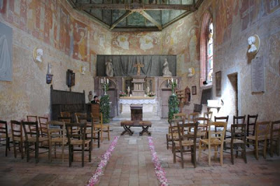 The chapel of La Verrerie has a painted interior including fleurs-de-lys and thistles surrounding roundels of portrait heads of contemporaries, both Scots and French.
