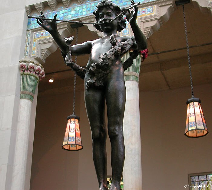 In 1889 he was awarded an Honourable Mention at the Salon for his Diana and this led to important American commissions, including the Nathan Hale memorial (above) and the decorative Pan fountain sculpture (below) for “Rohallion” the New Jersey mansion of banker Edward Adams, who opened for him a social circle of art-appreciating New Yorkers.