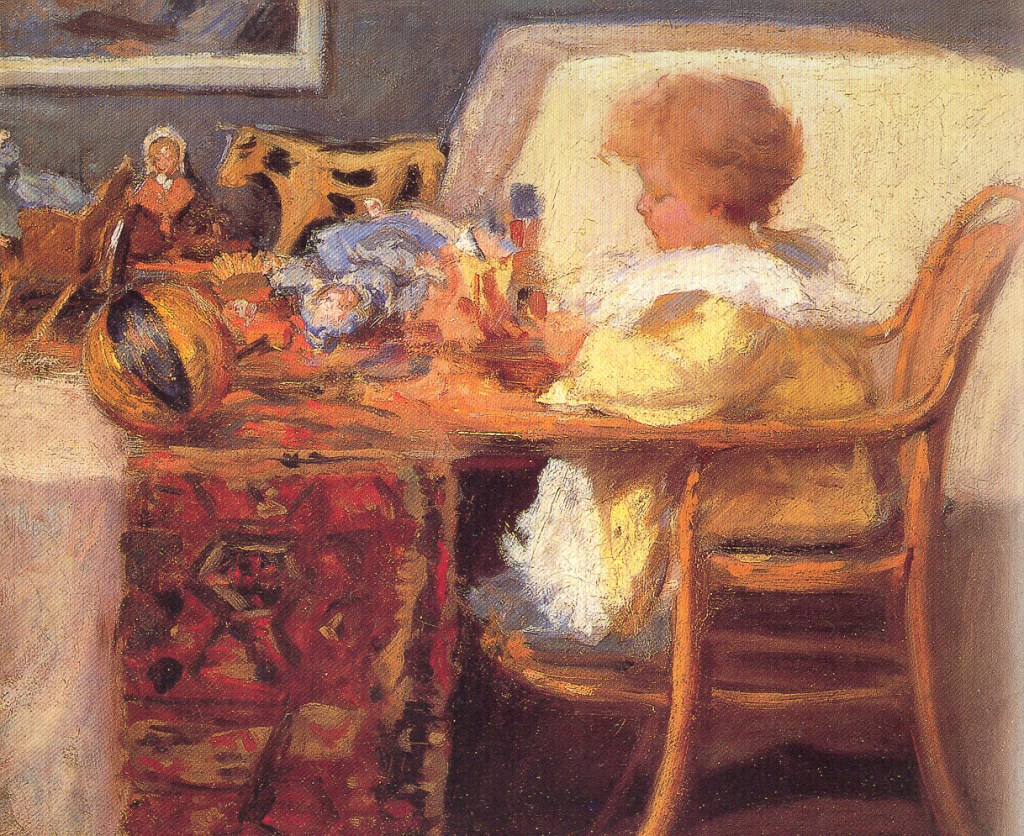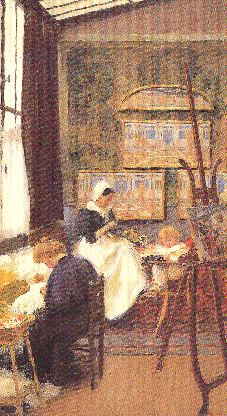 In fact MacMonnies became an intimate friend of Monet, in part through his long residency in the village. Frederick and Mary rented various villas before finally settling in and converting Le Mourier, ironically with his father’s connection with Whithorn, this had been the village priory! There they became known to their friends as ‘the MacMonastery’. In the grounds of their house they developed a formal terraced garden which, some argued, came to rival Monet’s own. When not at his studio in Paris, MacMonnies worked on his sculpture in a barn in the gardens, while his wife Mary worked in a studio inside the house, which also doubled as their daughters Berthe’s nursery.