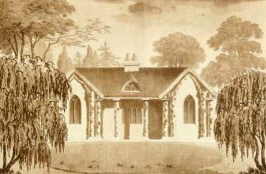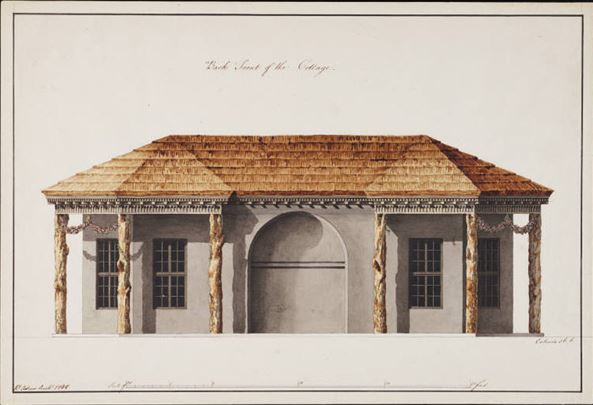 The Scottish architects, Robert and James Adam may have been among the first to devise this form of building in the mid-18th century. Several rustic elements are already present in their designs; the thatched roof, overhanging eaves, the rustic timbers supporting a veranda and the latticed windows.
